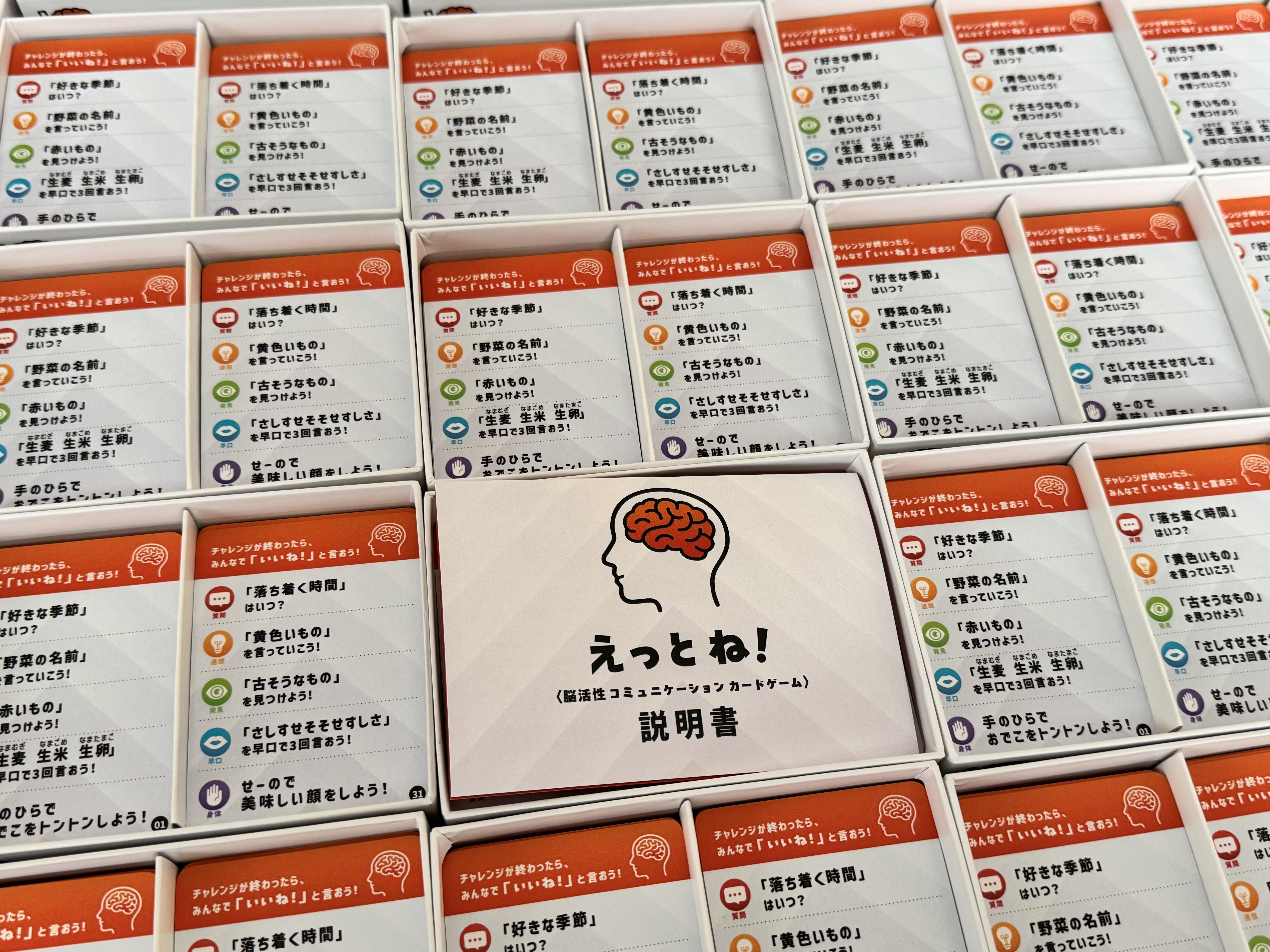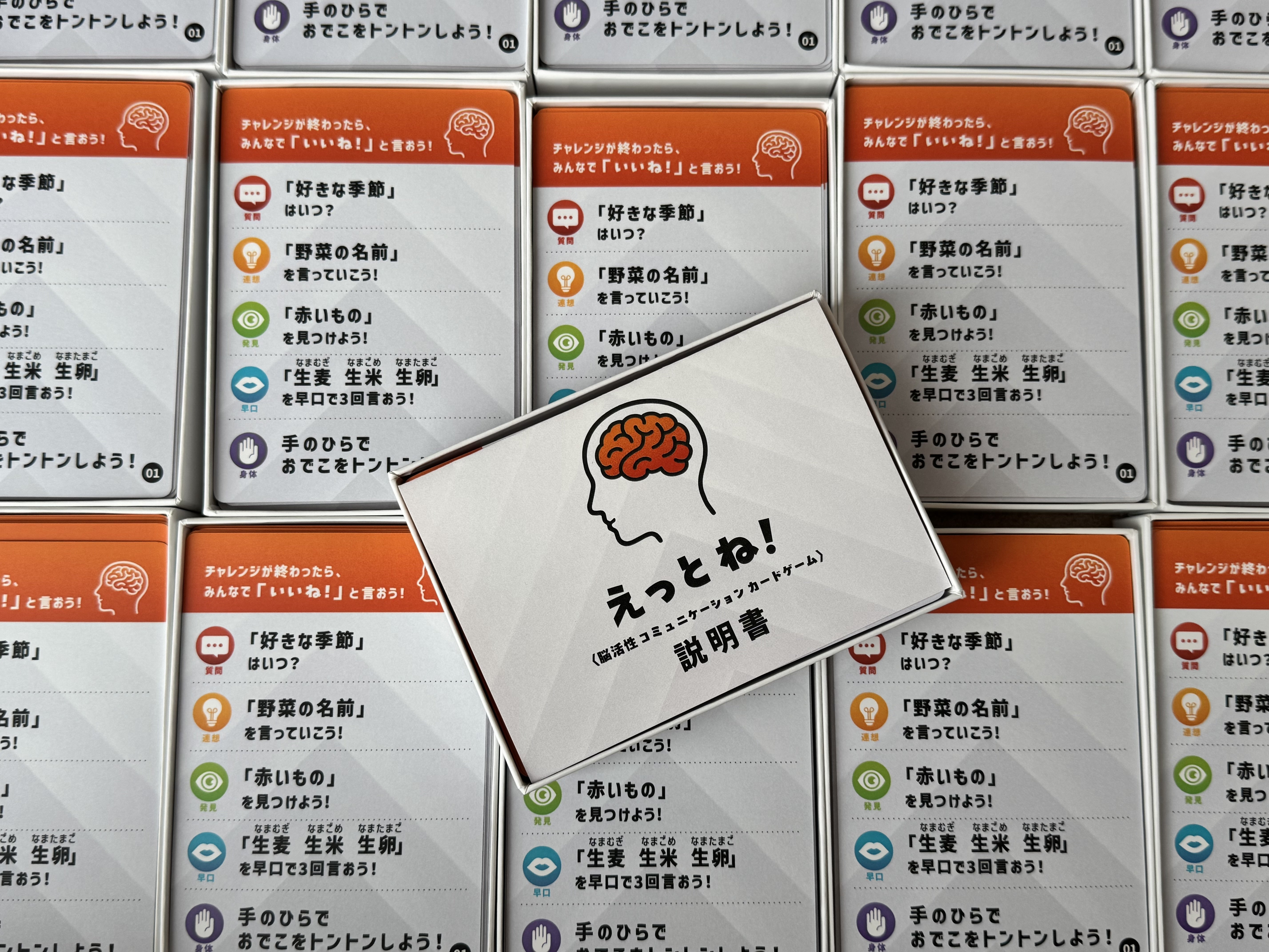 そこで今回の脳活性コミュニケーションカード「えっとね!」を持っていきます。会場でも販売予定です。