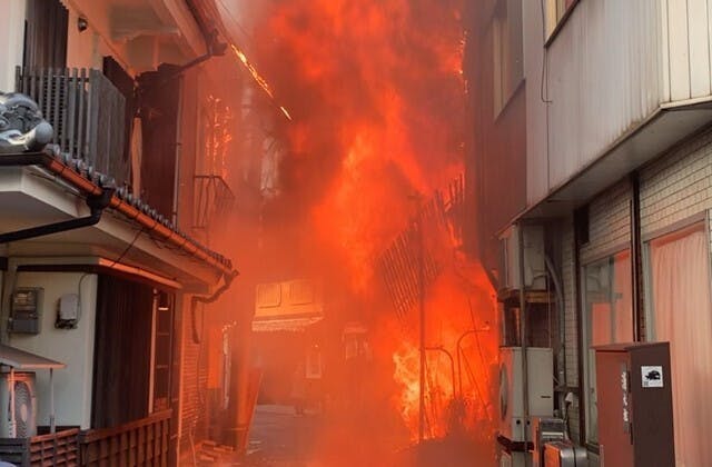 午後1時50分頃、細い通りを挟んだ先で火の手は上がりました。