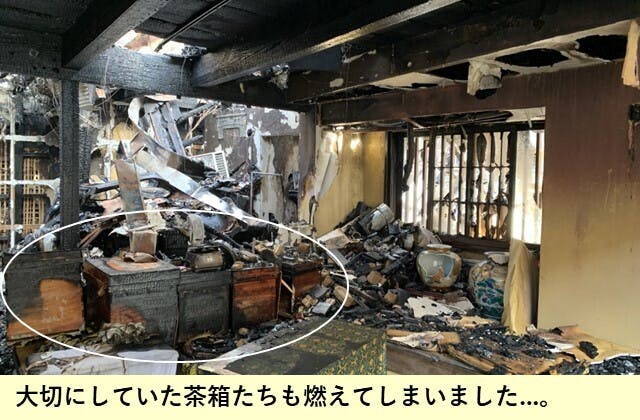 今回の火災で失ったものは、計り知れません。お客様と築いた大切な歴史の他にも、家族との写真や、思い出の詰まった茶箱も焼けてしまいました。しかし、3代にわたるお茶への情熱と、地域の皆さまとの絆は決して失われていません。