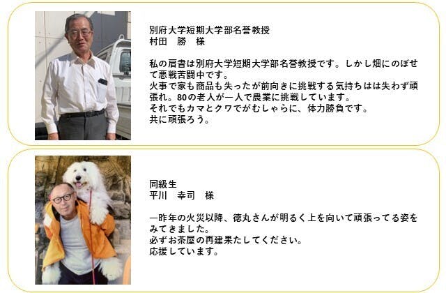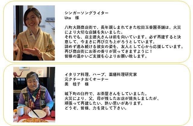 火災後、辛い出来事の中でも、声をかけて下さった皆さまからたくさんの勇気をいただきました。私が皆さまにできる恩返しは、店舗を再建し、美味しいこだわりのお茶と温かい交流の場を提供し続けることだと信じています!