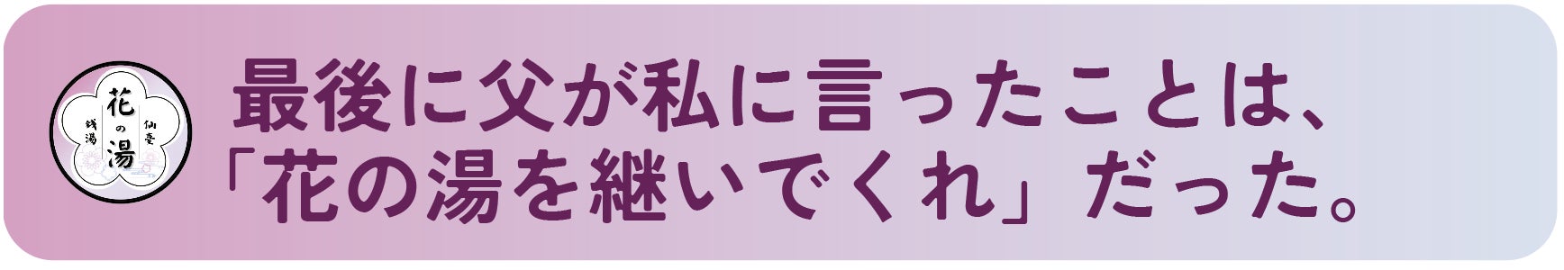 その時、父が最後に私に言ったのが「花の湯を継いでくれ」という言葉。