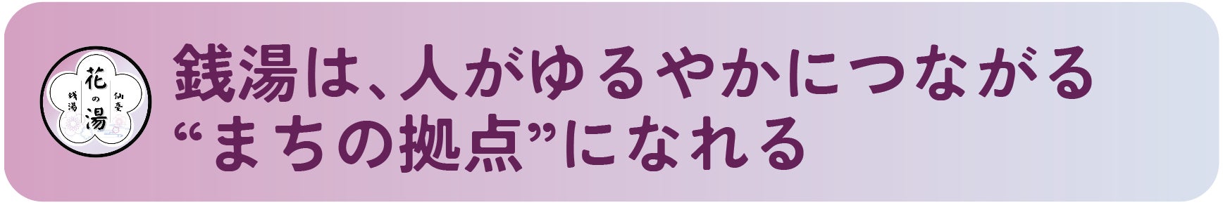 「花の湯」はただの銭湯ではなく、地域の心の拠り所だと思っています。