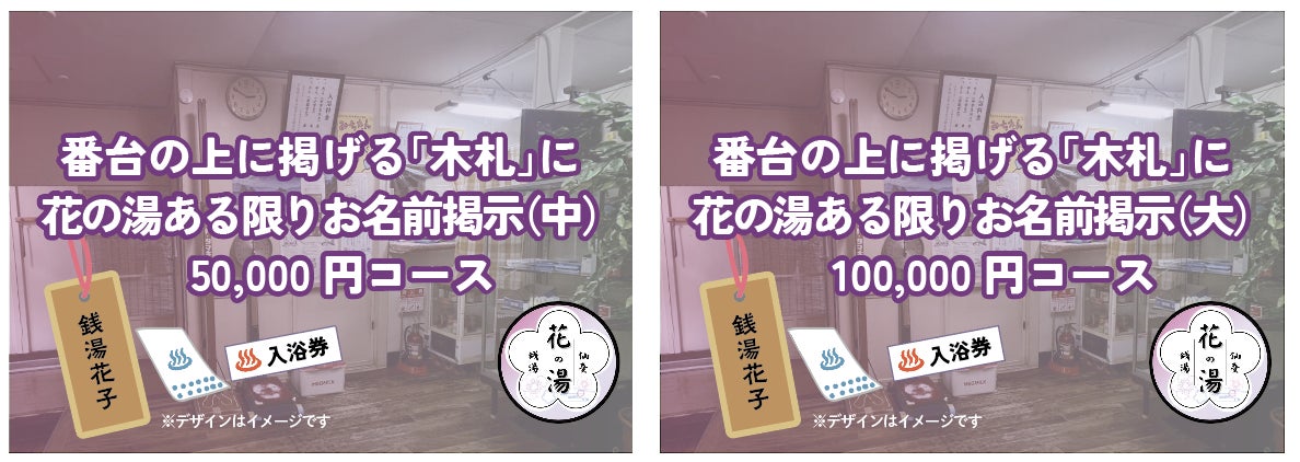 ・銭湯番台上の壁面に木札でお名前を掲げる権利付きリターン