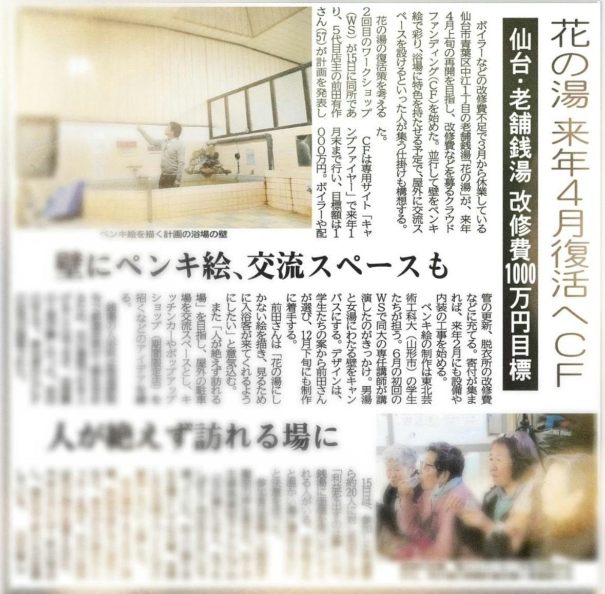 「次にお風呂が沸くまでは」Vol.1に取材に来てくださった河北新報さんが、11月25日の朝刊に今回の取組について掲載してくださいました。