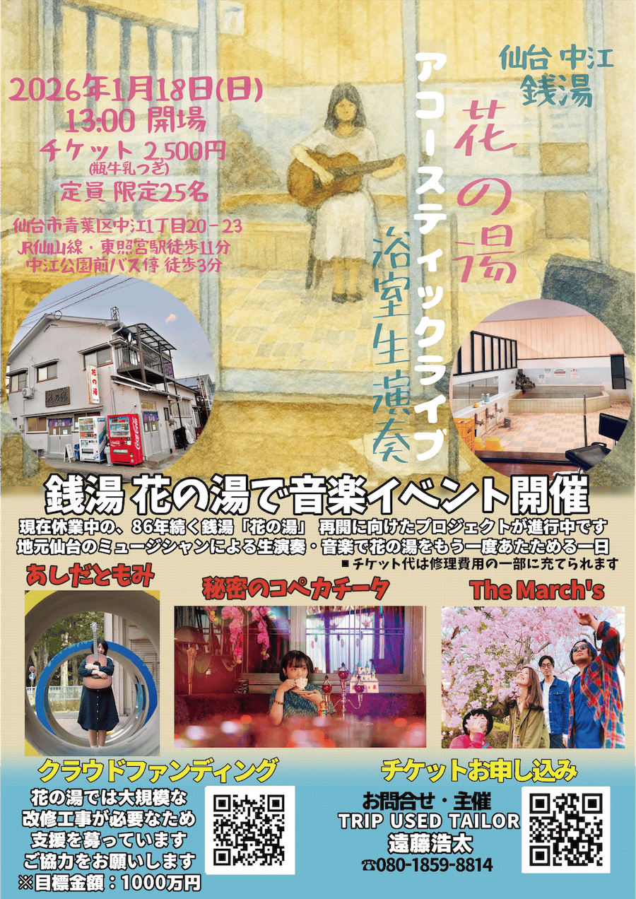 この機会にぜひ、銭湯というライブ空間を味わってみて下さい!