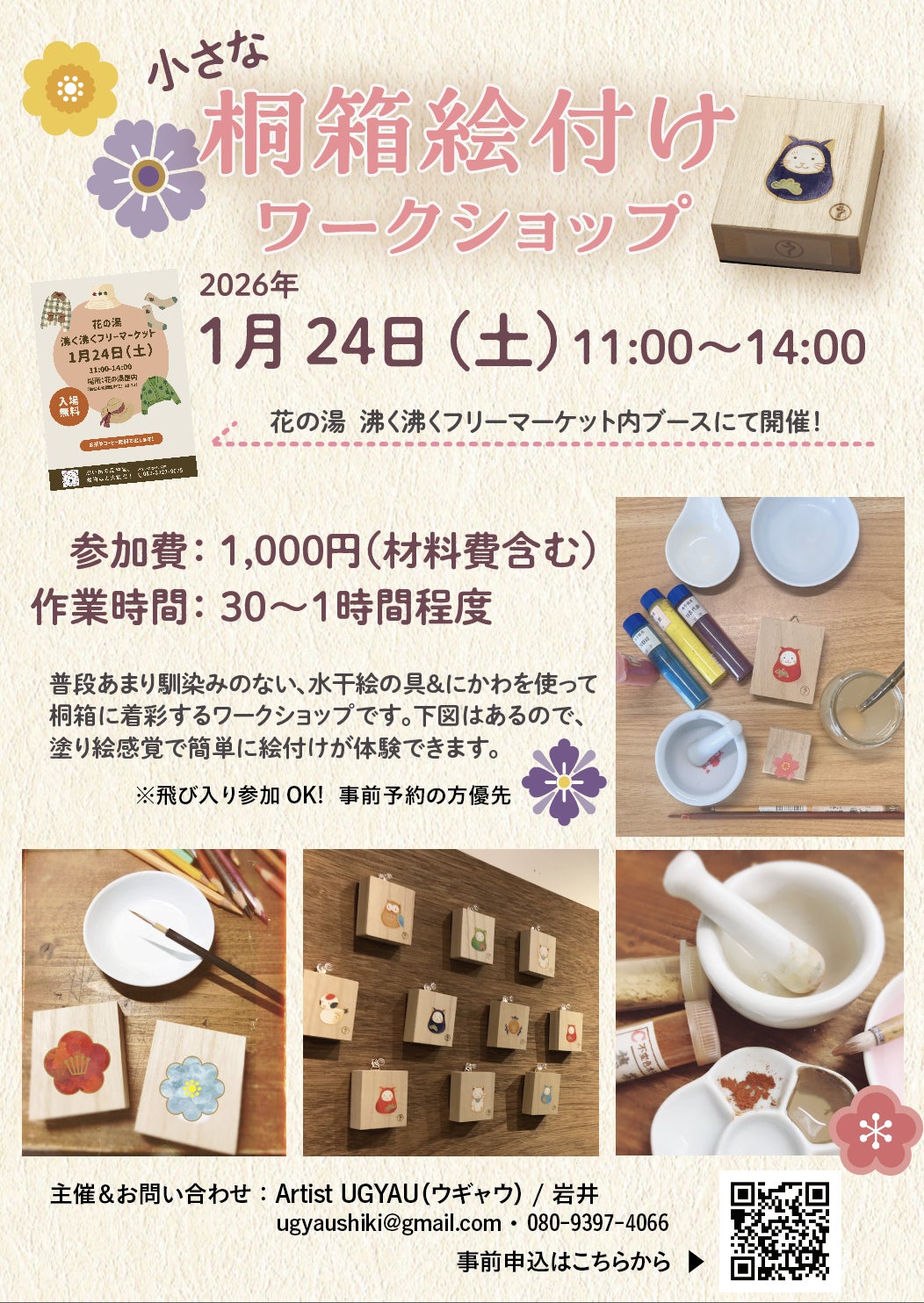 ※このイベントは同日開催する花の湯沸く沸くフリーマーケット内のブースで開催します。
