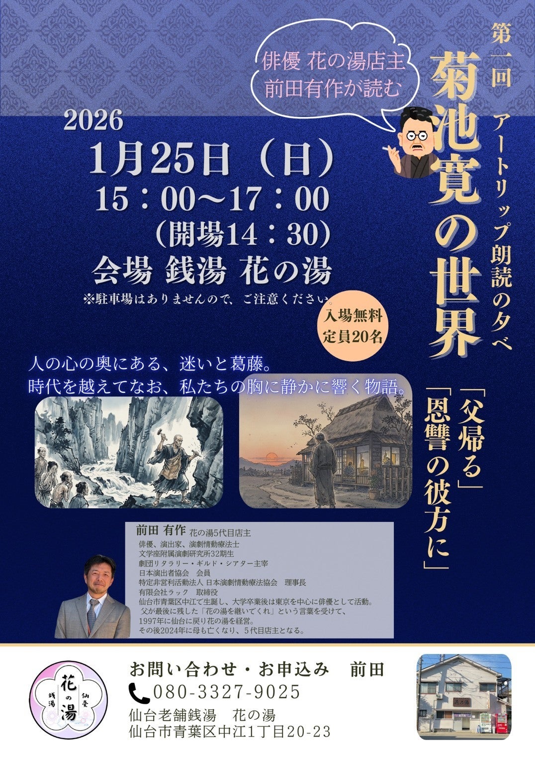 俳優 花の湯店主 前田優作が読む 「父帰る」「恩讐の彼方に」