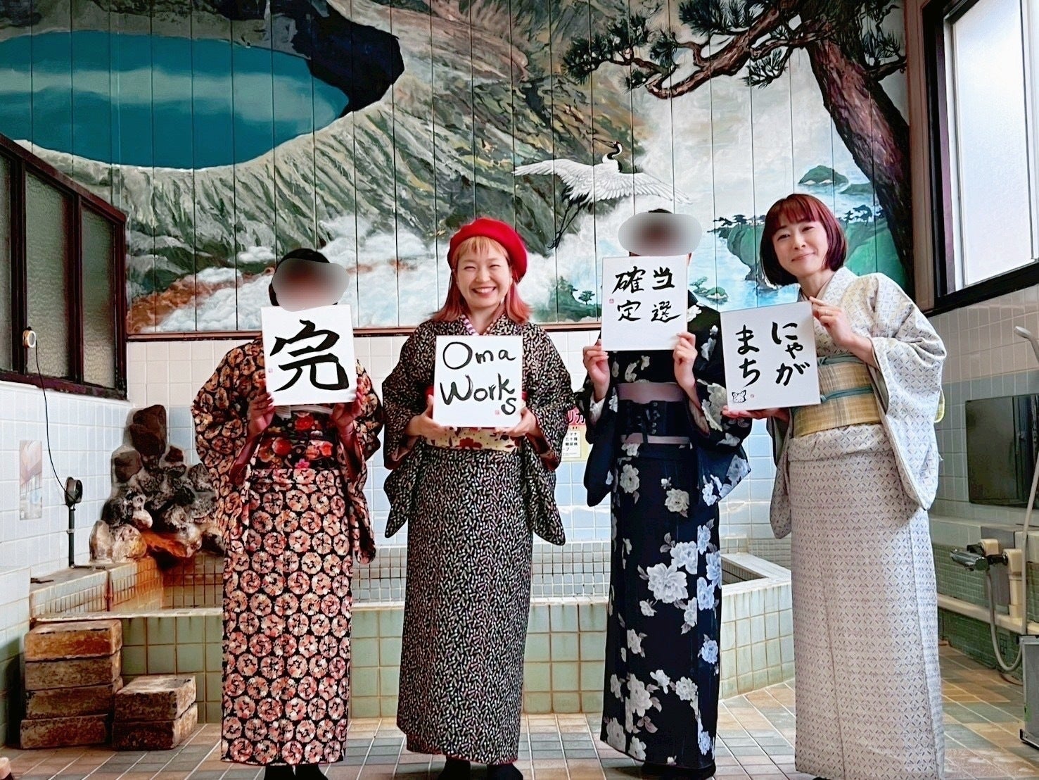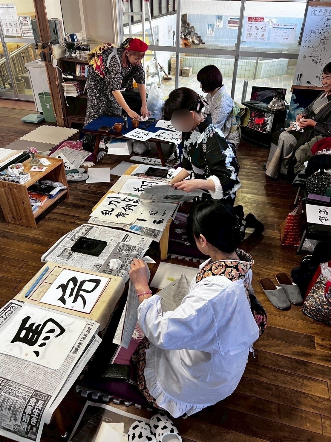 艶やかな着物姿の女子の皆さまが、わいわいおしゃべりしながらしたためる文字。