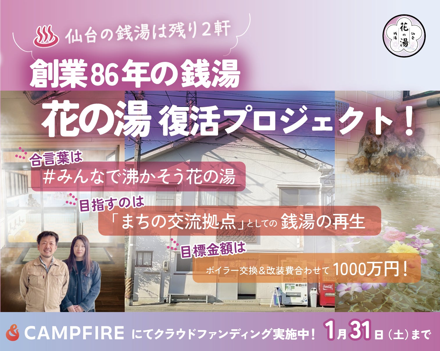 仙台の中江という場所にある花の湯。仙台市民の方でも「何処にあるの?」と言われるくらい知られていなかった小さな銭湯でした。