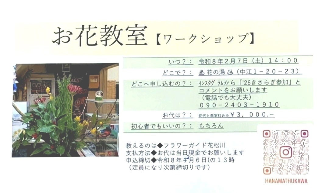 詳細・申込み: 公式Instagram https://www.instagram.com/hanamathukawa/
