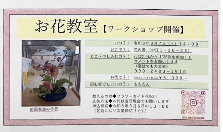 引き続き、花の湯で何かやってみたい!というご相談もお待ちしております。