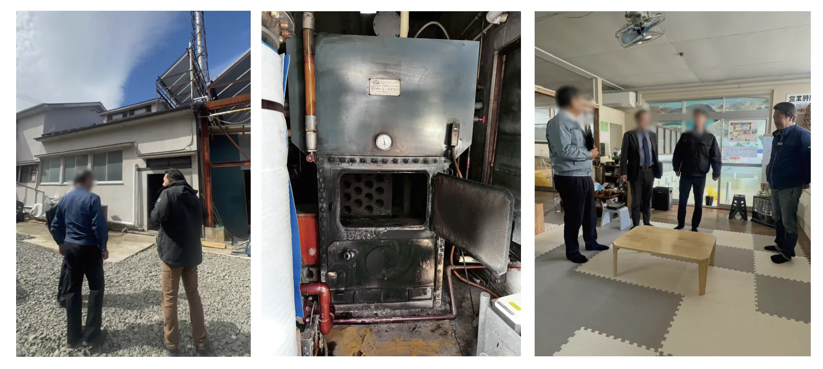 top画像はボイラー業者さんのお一人と県職員(環境政策課)の方が現地を見に来てくれた様子です。