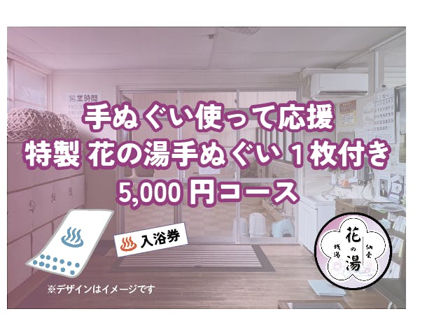 返礼品として入浴券1枚と「特製 花の湯手ぬぐい」もお付けします。