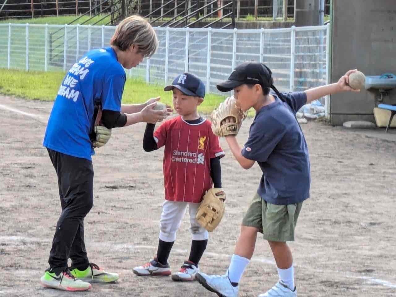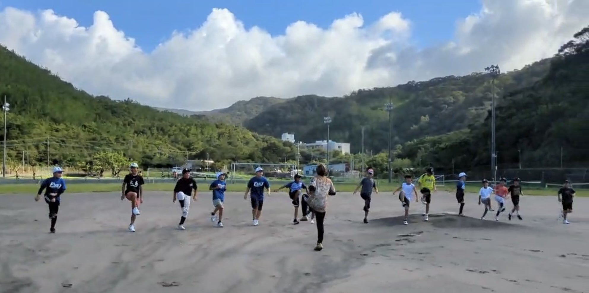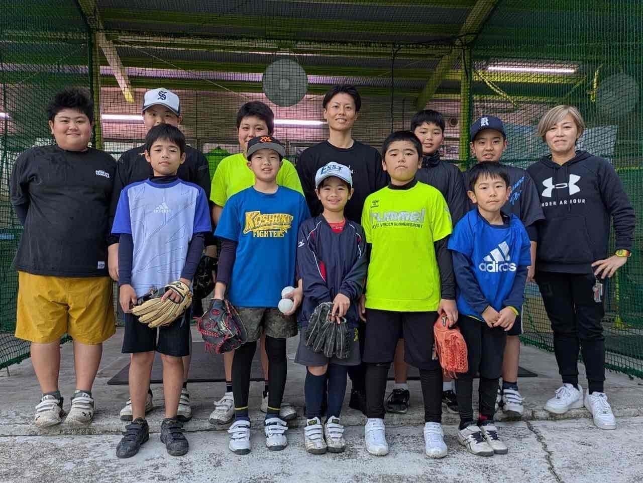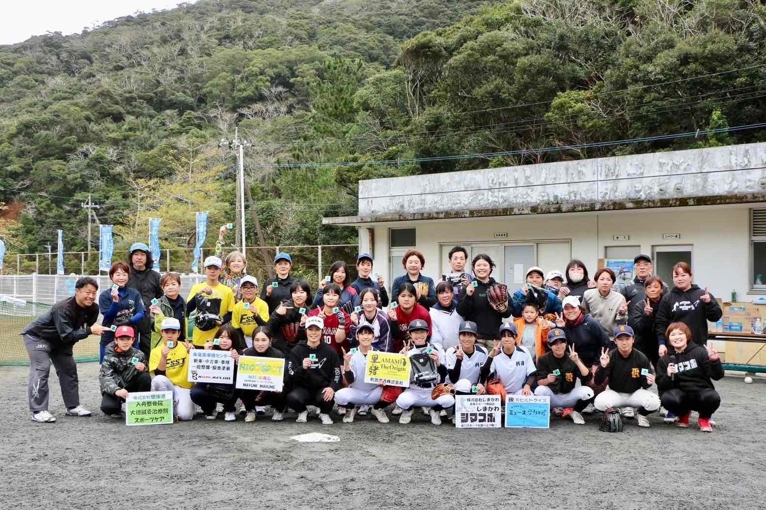 世界で活躍する女子野球日本代表の里綾実選手(奄美大島出身)と奄美の子どもたち
