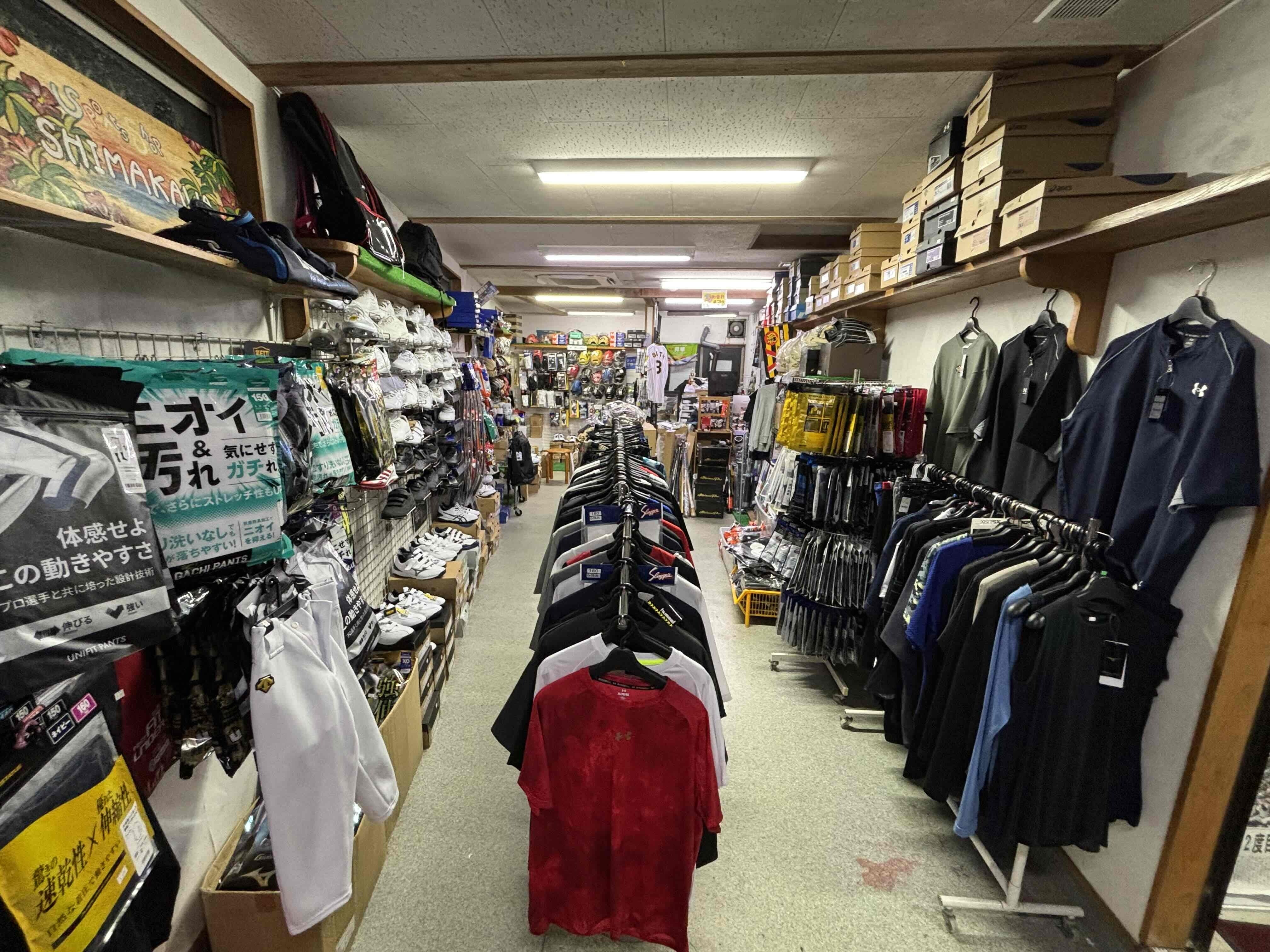 【バッティングセンター内のスポーツショップしまかわ朝仁店】