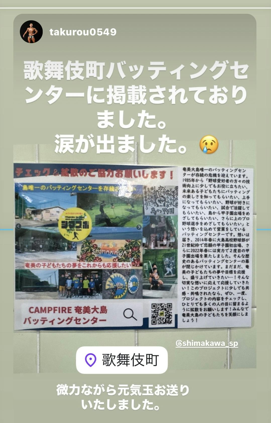私たちの奄美のバッティングセンターのポスターを作って応援してくれていて、