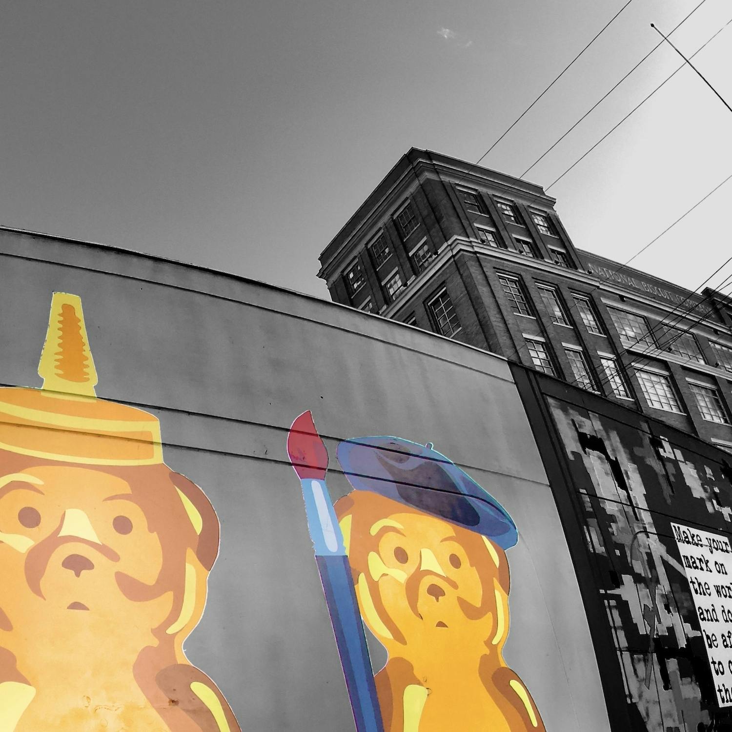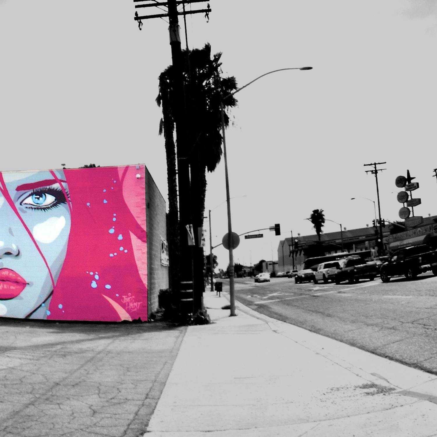 俺は「街の中のストリートアート」を撮りたい。だから「正面から画角いっぱいに撮る」は違う。I want to photograph "street art in the city." So "taking photos from the front, filling the entire frame" is not the right answer.まわりの風景も一緒に。その街の、その瞬間も、同時に切り取りたいと思ってる。この「渋滞ガン見ピンクお姉さん」は、街と一緒にはいっちゃってる。