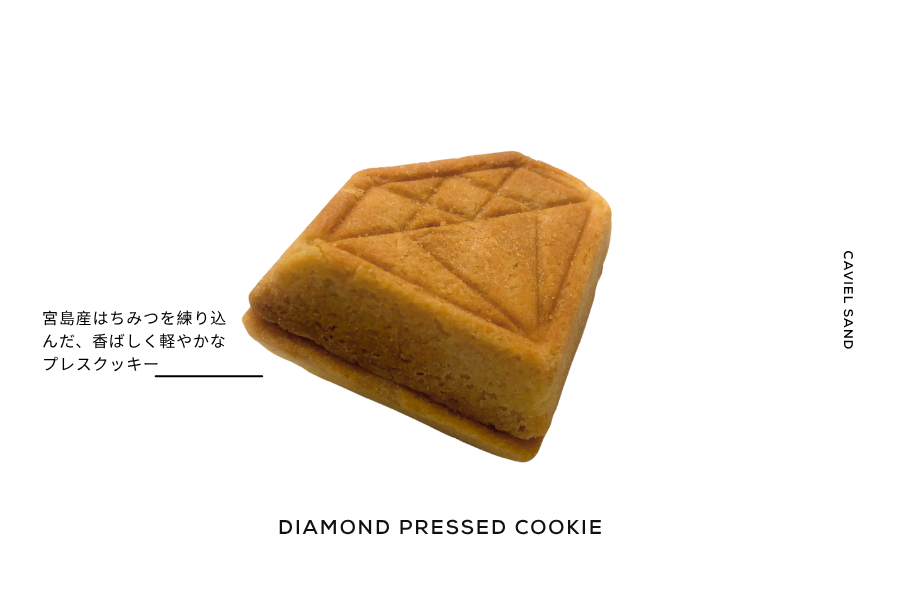 広島県宮島の自然が育んだはちみつを練り込み丁寧に焼き上げたダイヤモンド型クッキー。芳ばしさとやわらかな甘みが、クリームやチョコレートの味わいを引き立てます。