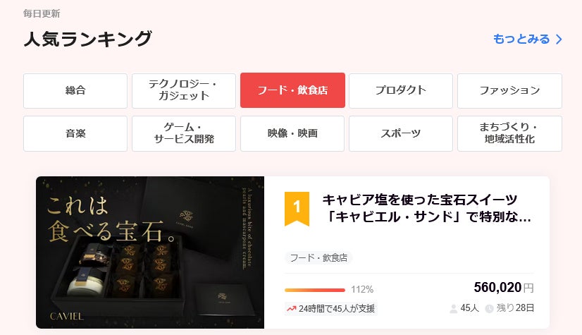 皆様のお力添えもあり、ファーストゴールとして設定した50万円は初日に達成いたしました。CAMPFIREのフード・飲食店人気ランキングでも1位を獲得。心より御礼申し上げます。