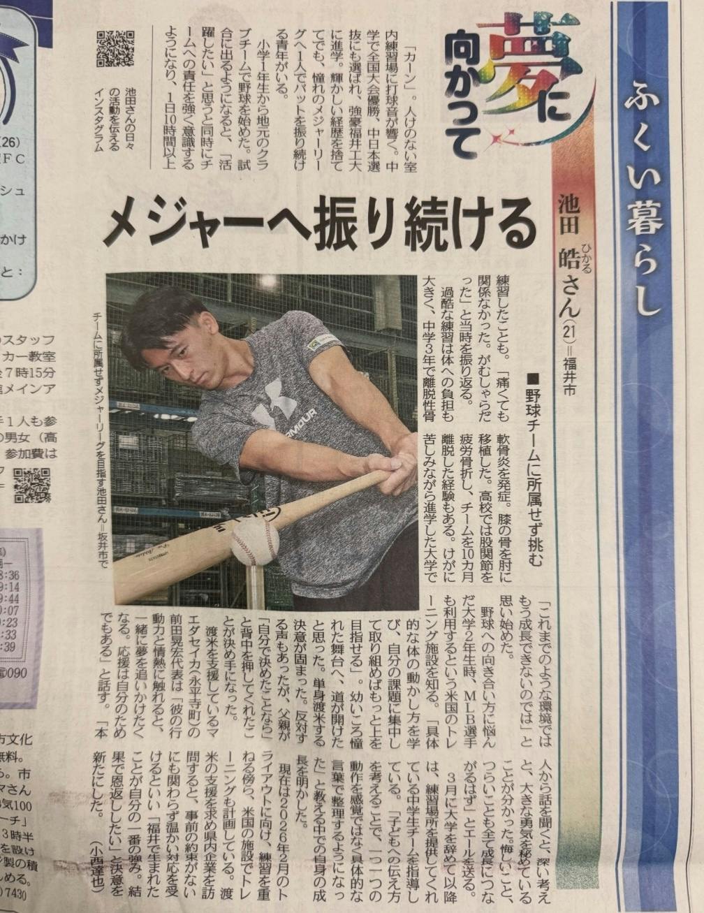 先日、日刊県民福井さんに僕の挑戦を掲載していただきました!