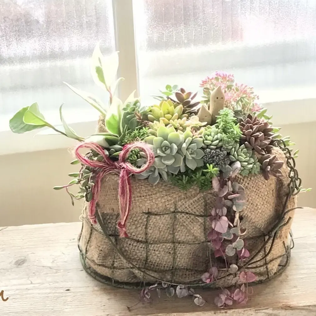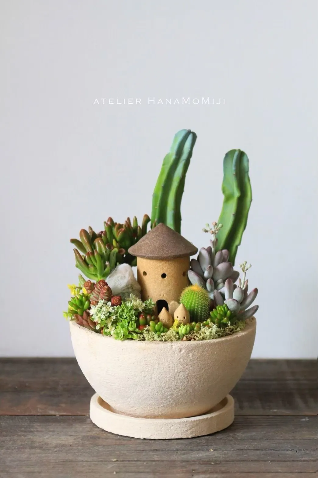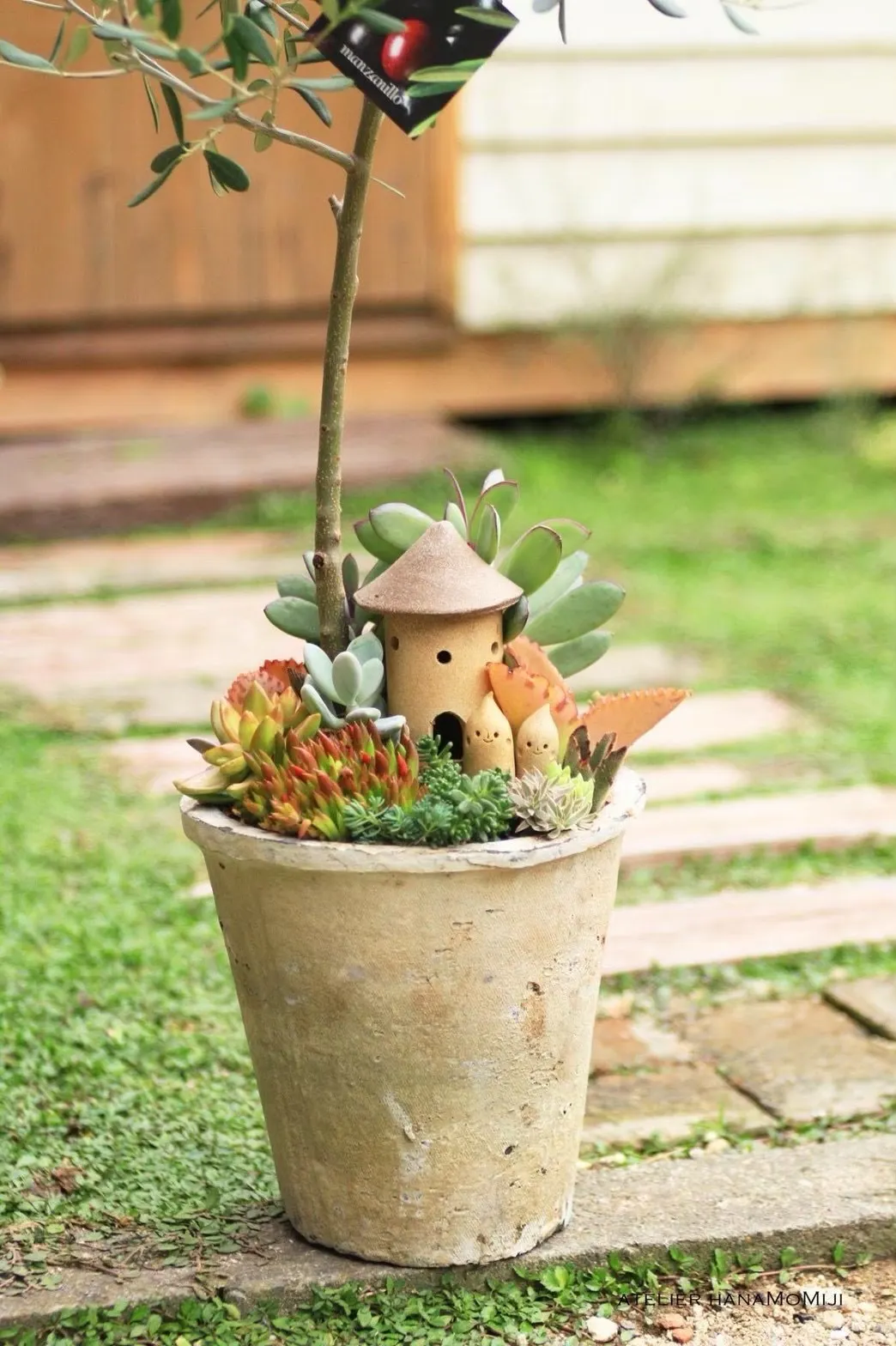 一緒にレストランの軒先でお花と陶器の移動販売を始め、やがて寄せ植えに、私のお人形を添えてもらうようになり、