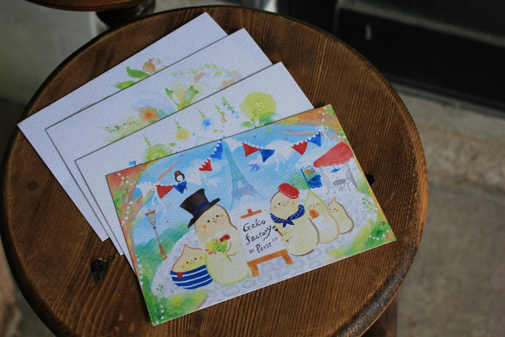 2026/01/11 11:21お待たせいたしました!クラウドファンディングにて、ご支援を頂いた皆様へお贈りするオリジナルのポストカードが仕上がってきました。リターン品によって発送時期は違いますが、来週よりポストカードの返礼の方々へ、順次発送致します!イラストはイラストレーターの、 @rei.illust.march さんに描いていただいた、優しいタッチの『にょきっち』や『しずくちゃん』。そしてParisを思わせるオリジナルのデザイン。どれも可憐で優しくて、温かで素敵なんです。ひとつひとつに世界があって。。。。一枚ずつ紹介させて下さい。【オリジナル限定デザイン Paris】小さな森のトンネルを潜ると、そこはParis。エッフェル塔に、石畳みの公園、小さなマルシェ。バケットを抱えたにょきっち、ベレー帽とおしゃれなストールのぽってりっちさん、立派なハットで紳士なぽってりっち、ボーダーのシャツを着こなすしずくちゃん、そして幸せを呼ぶツバメさん。【しずくちゃん】雨や雨上がりが大好きなしずくちゃん。水たまりに映る綺麗なお空も大好き。穏やかな表情で皆さんを見守ります。【しずくちゃんと妖精】心地よい風が吹く中でしずくちゃんと妖精が可憐にダンス♡フワフワ〜ラララァ。【にょきっちカップル】ぽかぽか陽気に、ついついうとうと眠くなっちゃう。 虫達も朗らかに舞っています。一枚一枚のストーリーを想像頂けると嬉しいです。Paris限定のポストカードは皆様に、クラファン目標達成のプレゼントとして、他3種類のどれか1枚を一緒にお届け致します。お楽しみに。。。。Gako factoryGako もっと見る