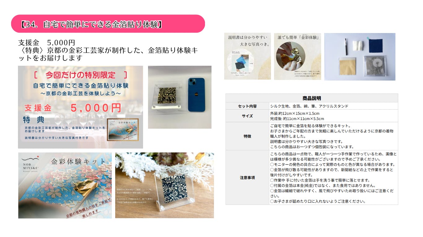 京都の金彩工芸を気軽に体験できる、大変貴重なリターン品です!