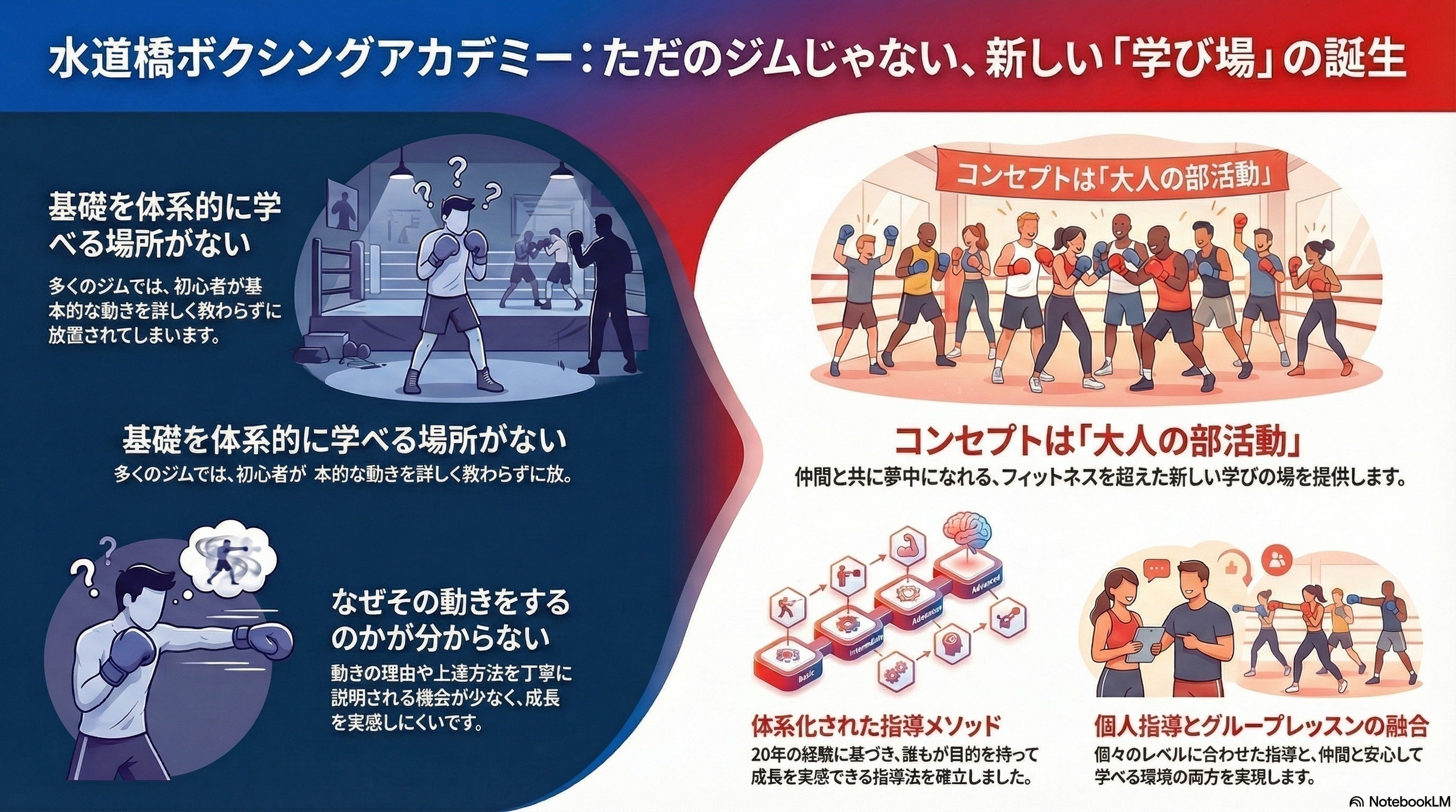 東京のど真ん中、水道橋に【大人の部活動】をコンセプトにした新しい学び場としてのボクシングジムを作ります。単なるフィットネスジムではなく、学生時代のように仲間と夢中になれる大人学び場です。