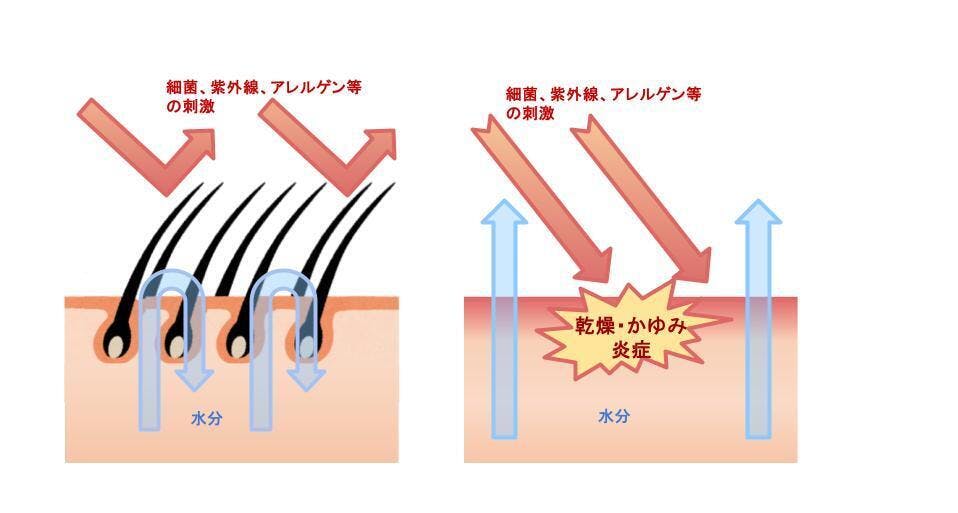 本来水分の蒸発を抑える機能のある角質と毛根がなくなってしまったことを補うためには、全身をしっかりとガードしてくれるウェアを着ることで寒さや紫外線から皮膚を守り、水分の蒸発を抑えることができます。