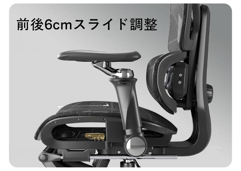 座面は前後6cmスライド調整が可能で、体格や好みに合わせて理想的な座深を実現。