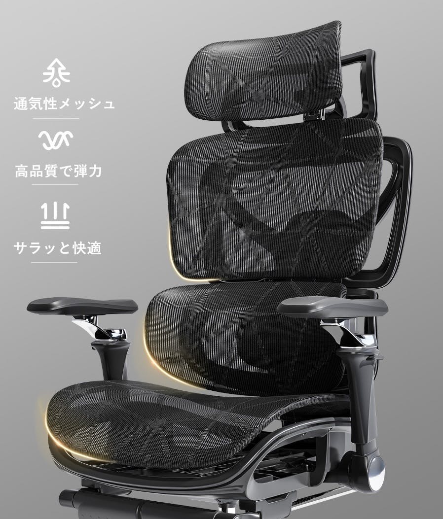 多機能設計で自然に背筋を伸ばし、長時間のデスクワークも快適に。