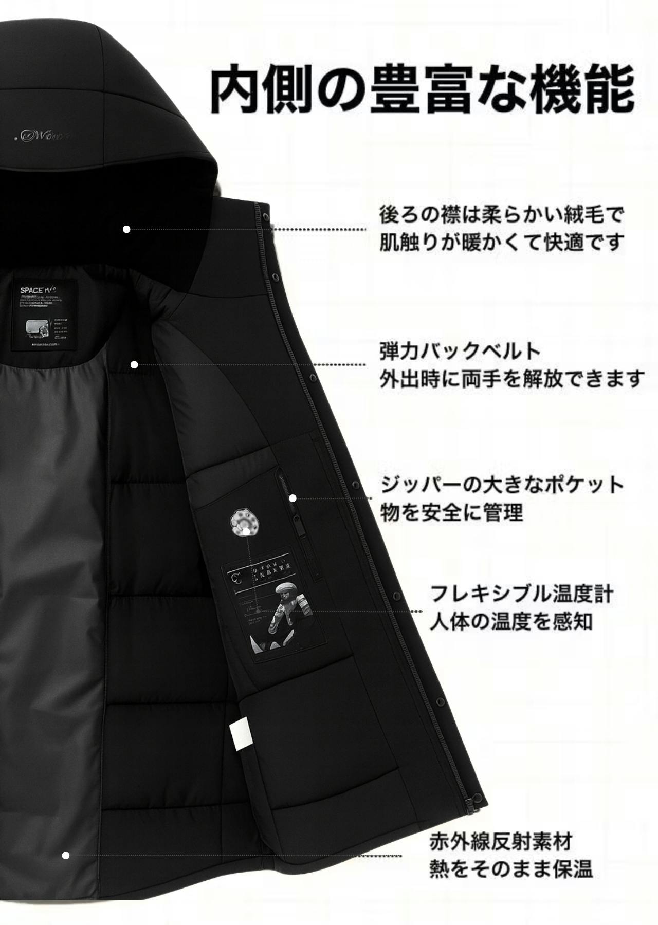 進化を重ねてきた「エアジャケット」が、ついに最新モデル登場。厚さわずか2mmで−196℃を断熱する宇宙服素材「エアロゲル生地」、最新開発の「S・KISTLER®エアロゲル綿」、そして遠赤外線蓄熱技術「SPACE HEAT」。この3つの先端テクノロジーが融合し、“冬でも暖房に頼らない”次世代の防寒体験を実現しました。