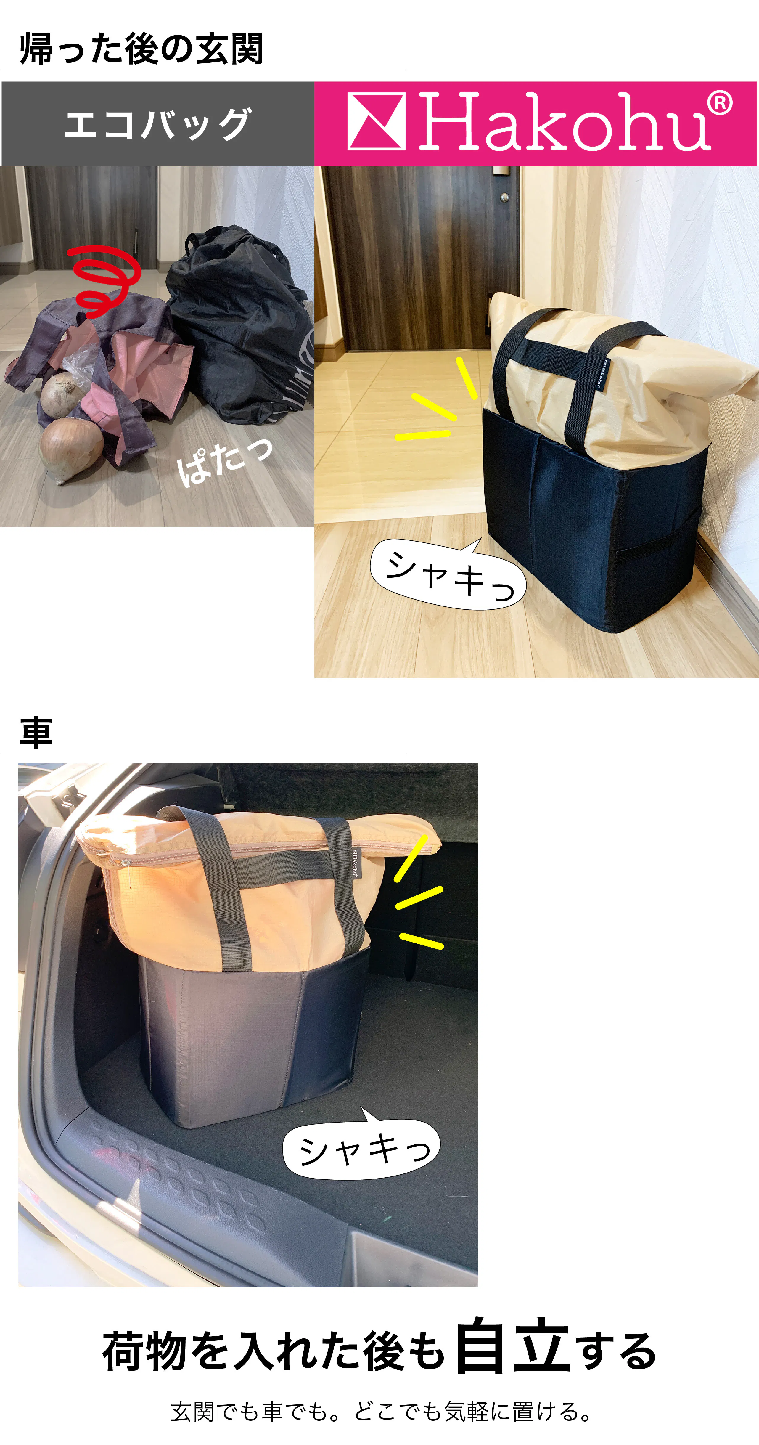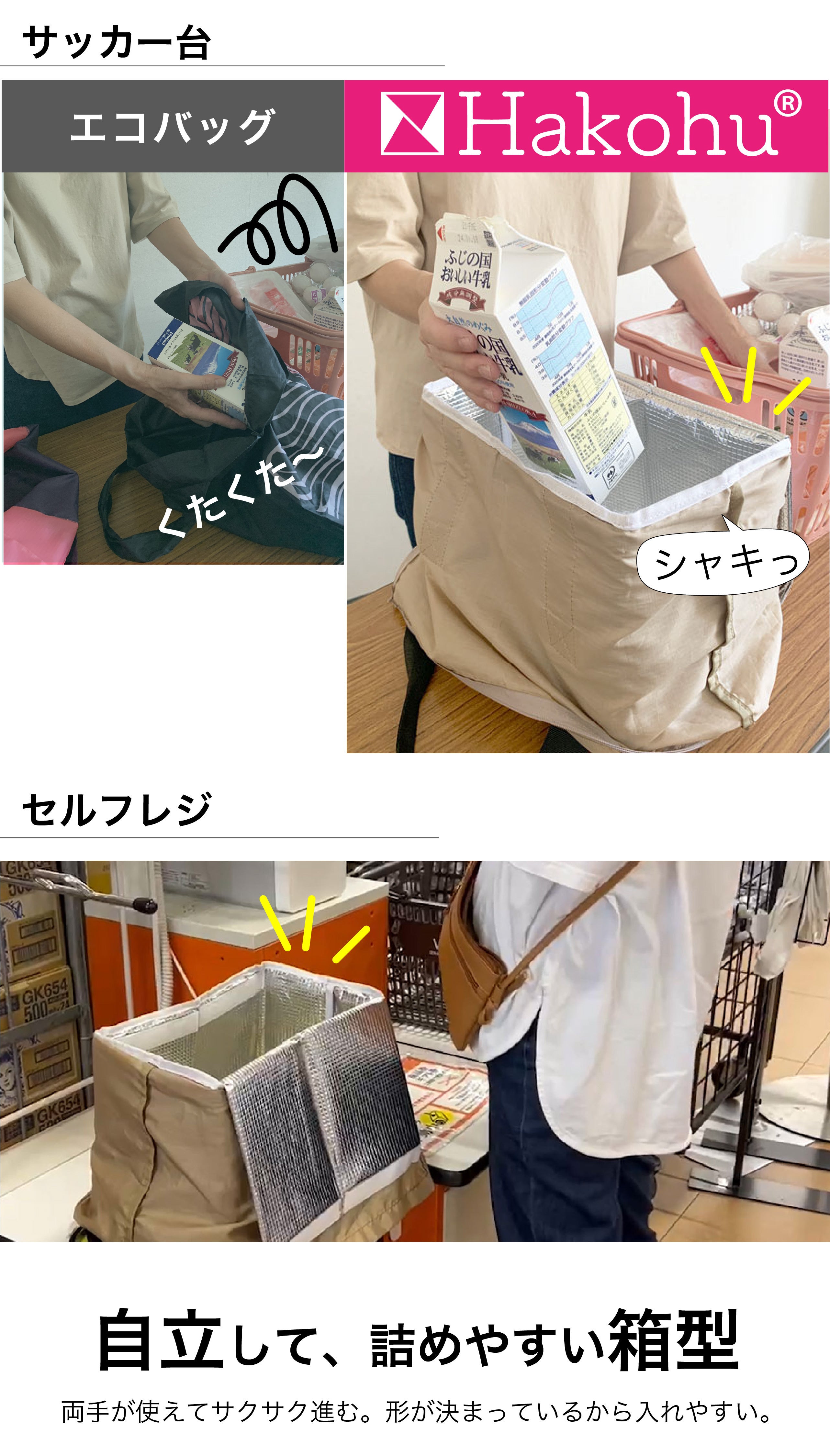 2026/03/23 15:23【レジカゴ約1杯分が入る】自立する、2階建て、エコバッグ。 Hakohuハコフをご支援いただいた皆様ご支援、誠にありがとうございました。3/19にて応援いただきました皆様への発送が完了しております。Hakohu®で皆様の日々のお買い物が少しでも楽になれば、嬉しく思います。これからHakohu®をよろしくお願いいたします。 もっと見る