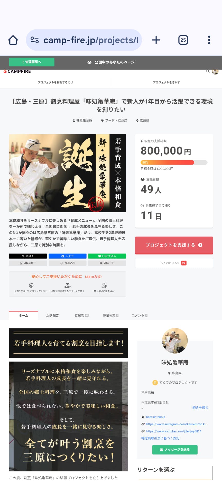目標金額は1,000,000円