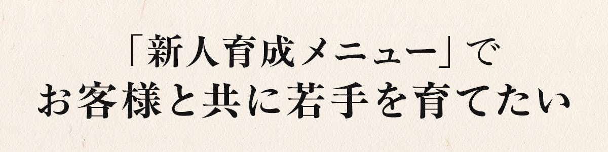 お客様には、若手料理人の成長を、一緒に見守っていただきたいのです。