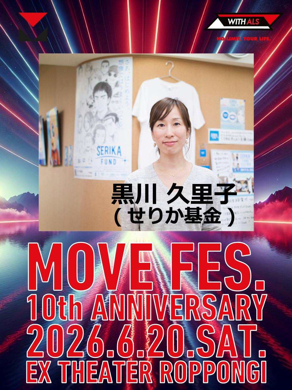 ALSとともに生きながら、自らの表現で未来を切り拓こうと挑み続ける武藤将胤さん。その姿は、同じくALSと向き合うせりか基金にとっても大きな希望です。病を越えて新しい可能性を形にしていくその行動に、私たちは何度も勇気をもらってきました。ぜひ、MOVE FES.でその想いを感じてください。