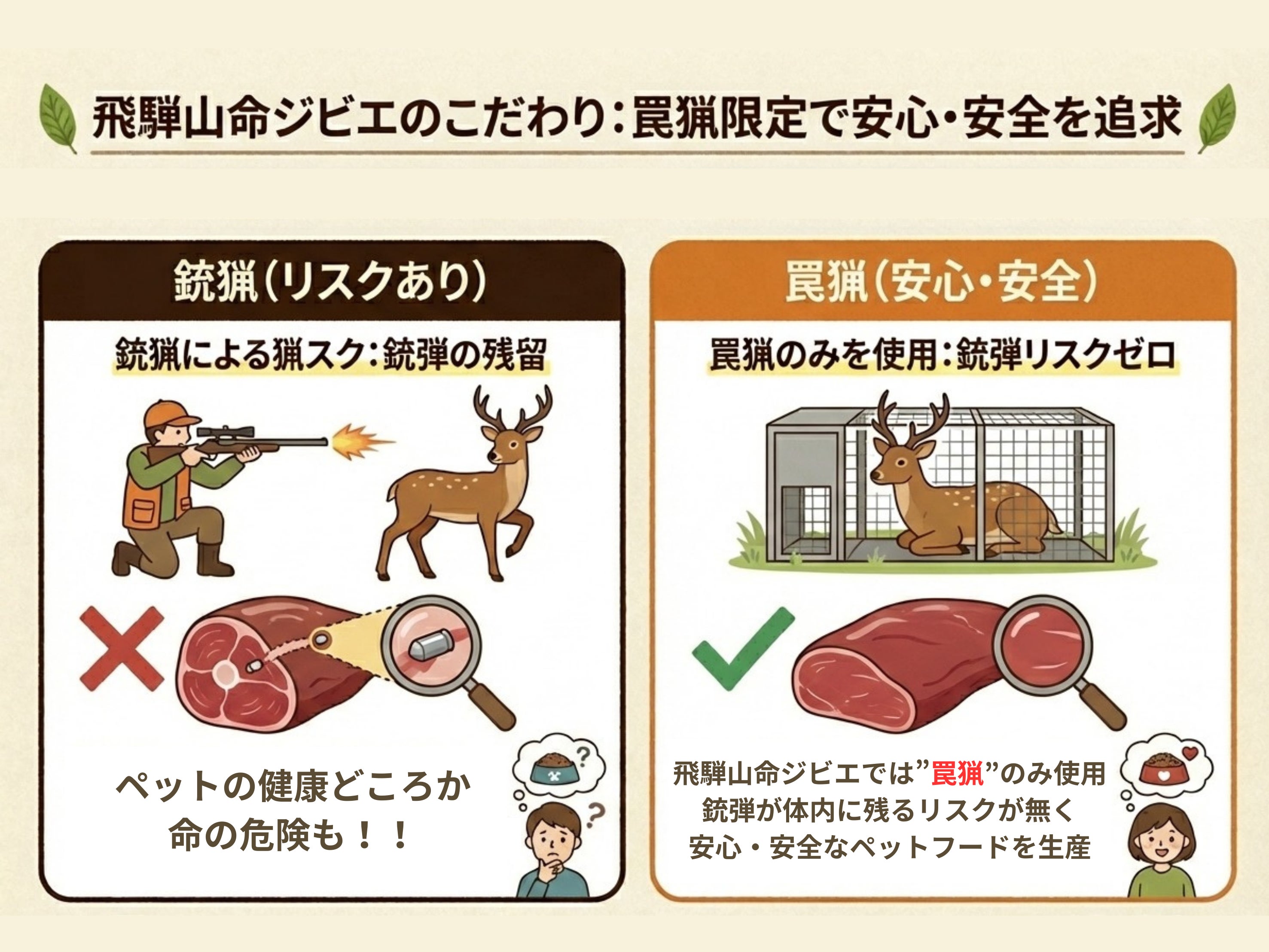 そのリスクを減らすため、全て罠猟にて捕獲した鹿のみを使用し、