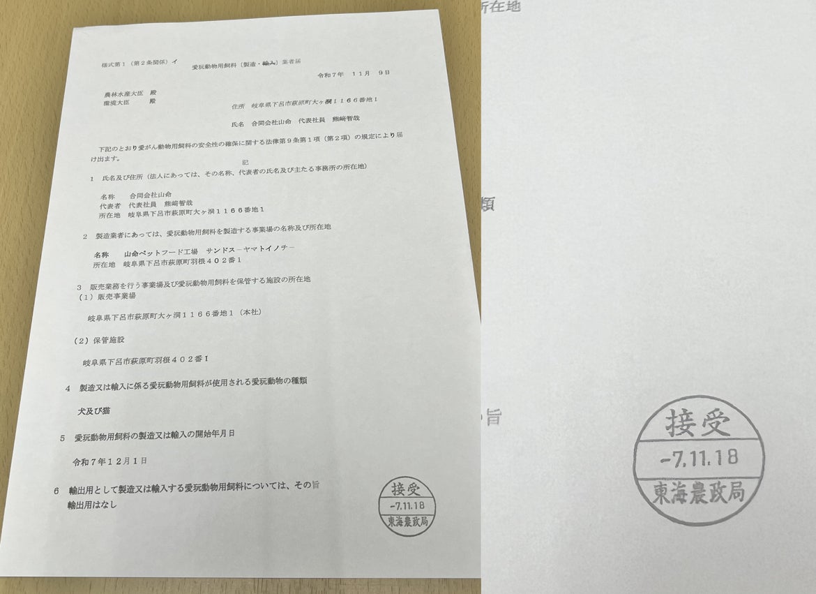 愛玩動物用飼料製造業者届書工場所在地
