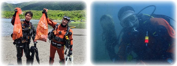 僕は年間を通して、スキューバダイビングを使用して、湖や漁港などの海底清掃を行っています。(主に富士五湖や伊豆半島周辺、東日本地域の漁港や釣り施設等)