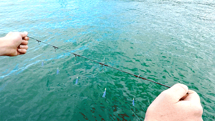 A、アジやサバが一般的ですが、ワカシやイナダ、カツオやタチウオなども狙えます。場所によっては、シイラや小型のキハダマグロがかかることもあります。