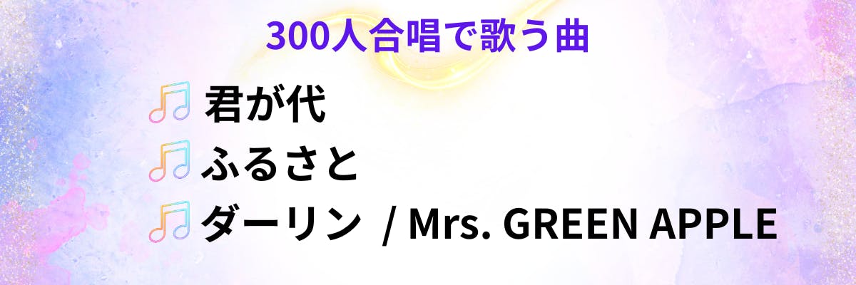300人集まってみんなで歌う曲はこちらの予定です