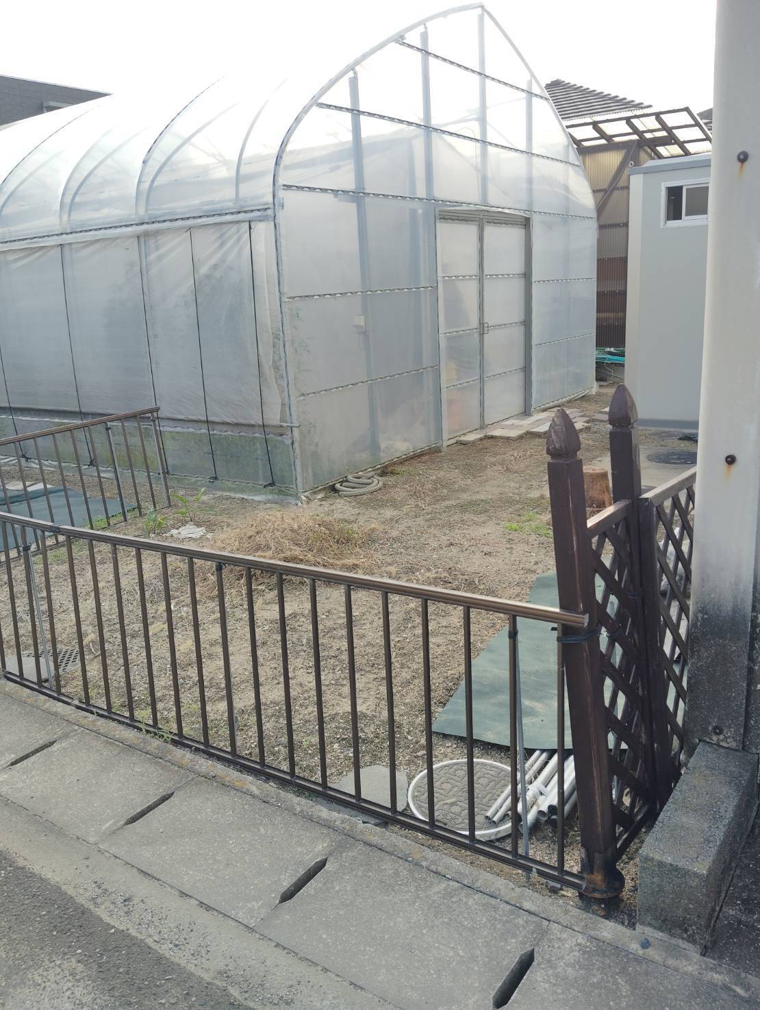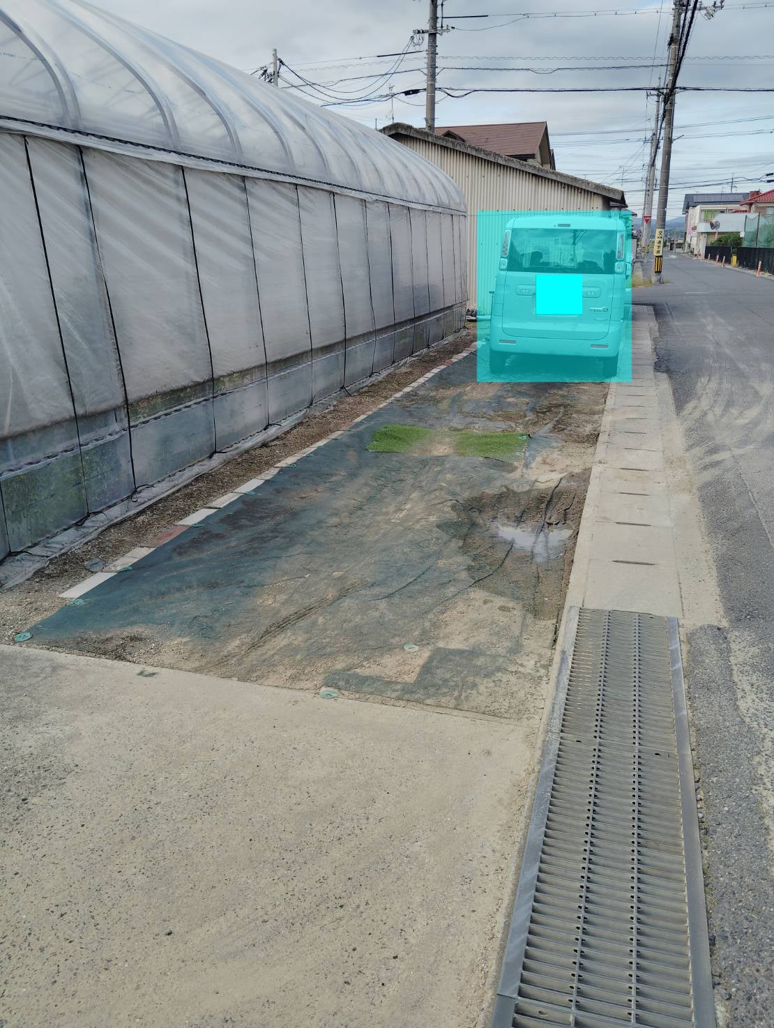 ※現在駐車場として使用してるが車の重さにより凸凹してる地をモルタルにて平衡化。その上に小型プレハブを設置。