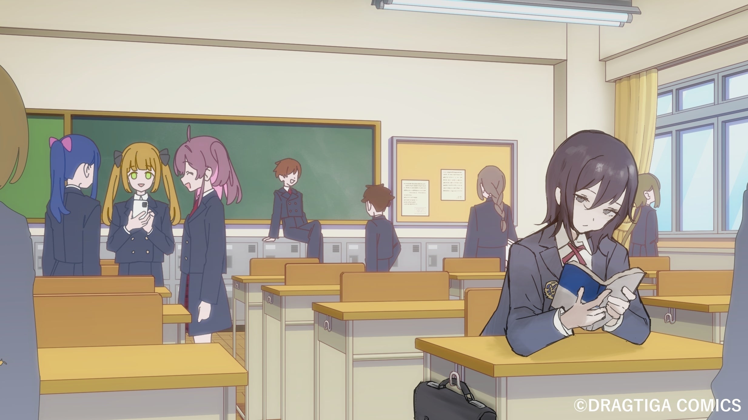こんにちは! DRAGTIGA COMICSの西村虎次郎です!クラウドファンディング終了まで残り2週間となりました! ご支援いただいている方、本当にありがとうございます! 現在35%で、到達まではまだかかりますが、全力でこの作品とプロジェクトの良さを伝えられるように頑張っていきます!気になっているけれど、まだご支援いただいていない方は、ぜひこの機会に応援いただけたら嬉しいです!さて、今日の活動報告では、『カワイイポップ☆キラピュア』のコンセプトアートが完成したの語報告とお披露目をしたいと思います!どうぞ!コンセプトアート完成!『カワイイポップ☆キラピュア』コミック本編の1コマです。お伝えしている通り、DRAGTIGA COMICSではレイアウト・背景美術・キャラクター作画・着色・写植と、複数のアーティストが集まってコミックを作っています。今回の『カワイイポップ☆キラピュア』も、全ページこのクオリティで制作されます!今作は魔法少女アニメのような世界の中に、全くそぐわない様な違う絵柄のキャラクターを出てくるコミックならではの作品です。コンセプトアートでも、アニメ調の教室の中にぽつりと座って本を読む、不均一な線で描かれた独特な絵柄の少女がいます。彼女が今作の主人公、伊藤ノエルです。ノエルとノエルの持っているカバンや本は同じ絵ですが、周りは均一な線で均一な色で塗られた世界です。制服も同じなはずですが、なぜか色が違う。彼女が感じている周囲と自分との違いや、言い知れぬ疎外感と孤独感を感じてもらえたらと思います。今回制作を目指している第1話では、同じく絵柄の違う同級生のキャラクターが出てきます。その子とノエル、いったいどんな事件を起こすのでしょうか?ぜひ本編でお確かめください!