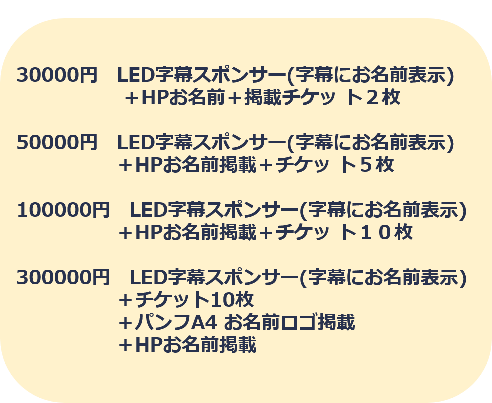 各種チケットを取り扱い致します。新たなリターンも追加していきますので時々チェックしてくださいね!