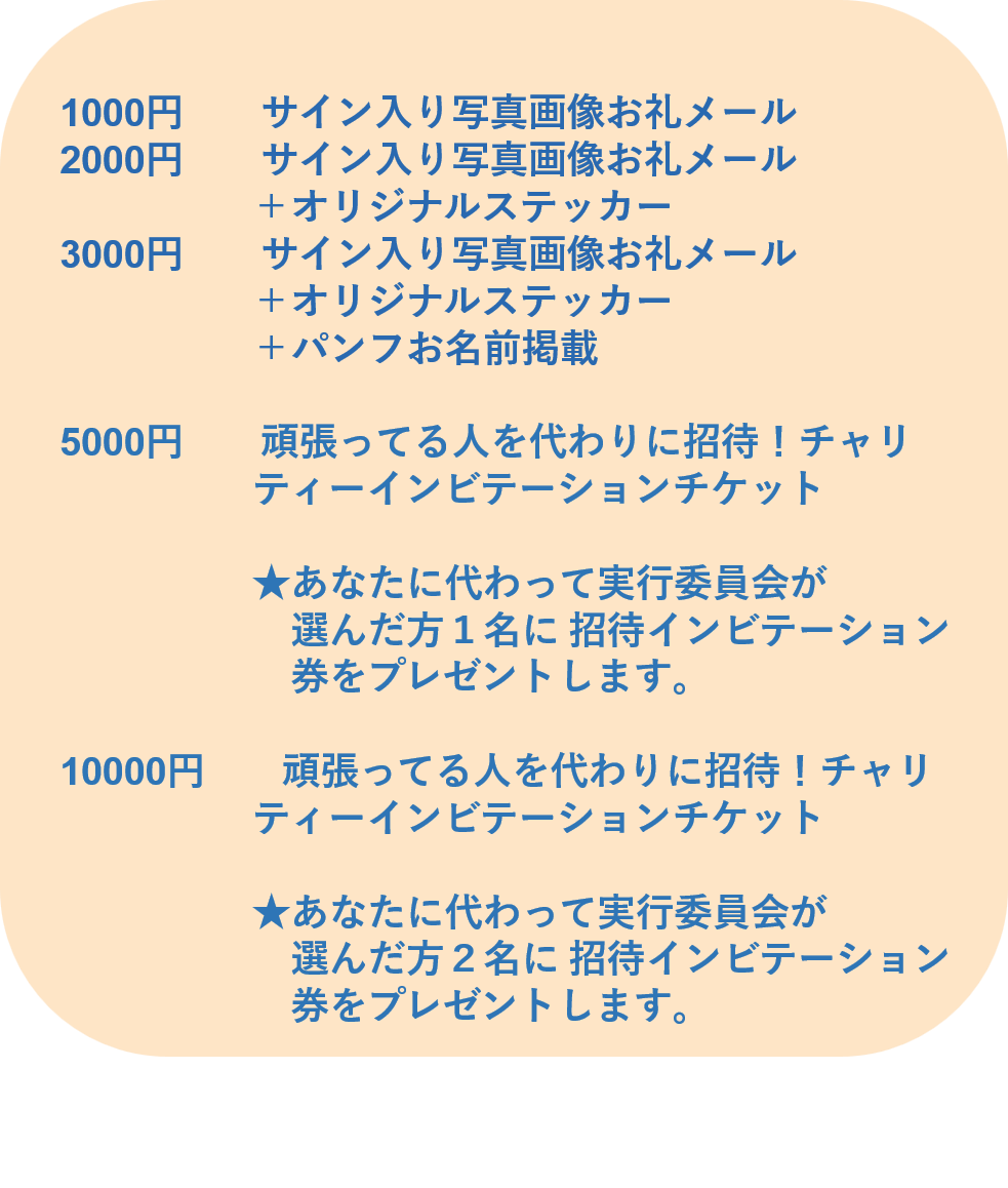あなたの応援はチケットでもメールでもすべてこのライブの実現する力になります!一緒に感動を作っていただけませんか?