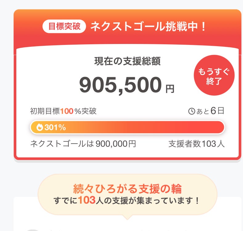 本当に沢山の応援とご支援ありがとうございました!ネクストゴール達成です!