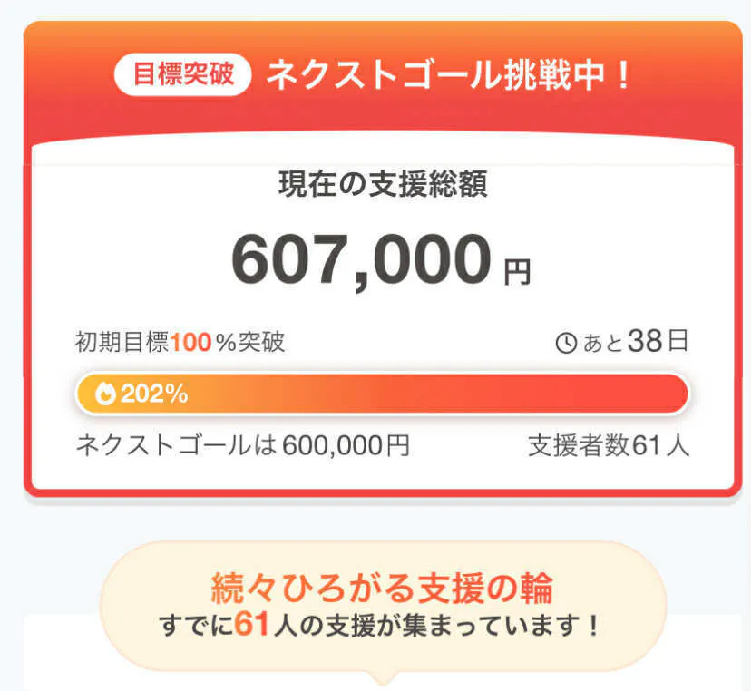 感謝!残り38日を残して、ネクストゴールを突破することができました!!