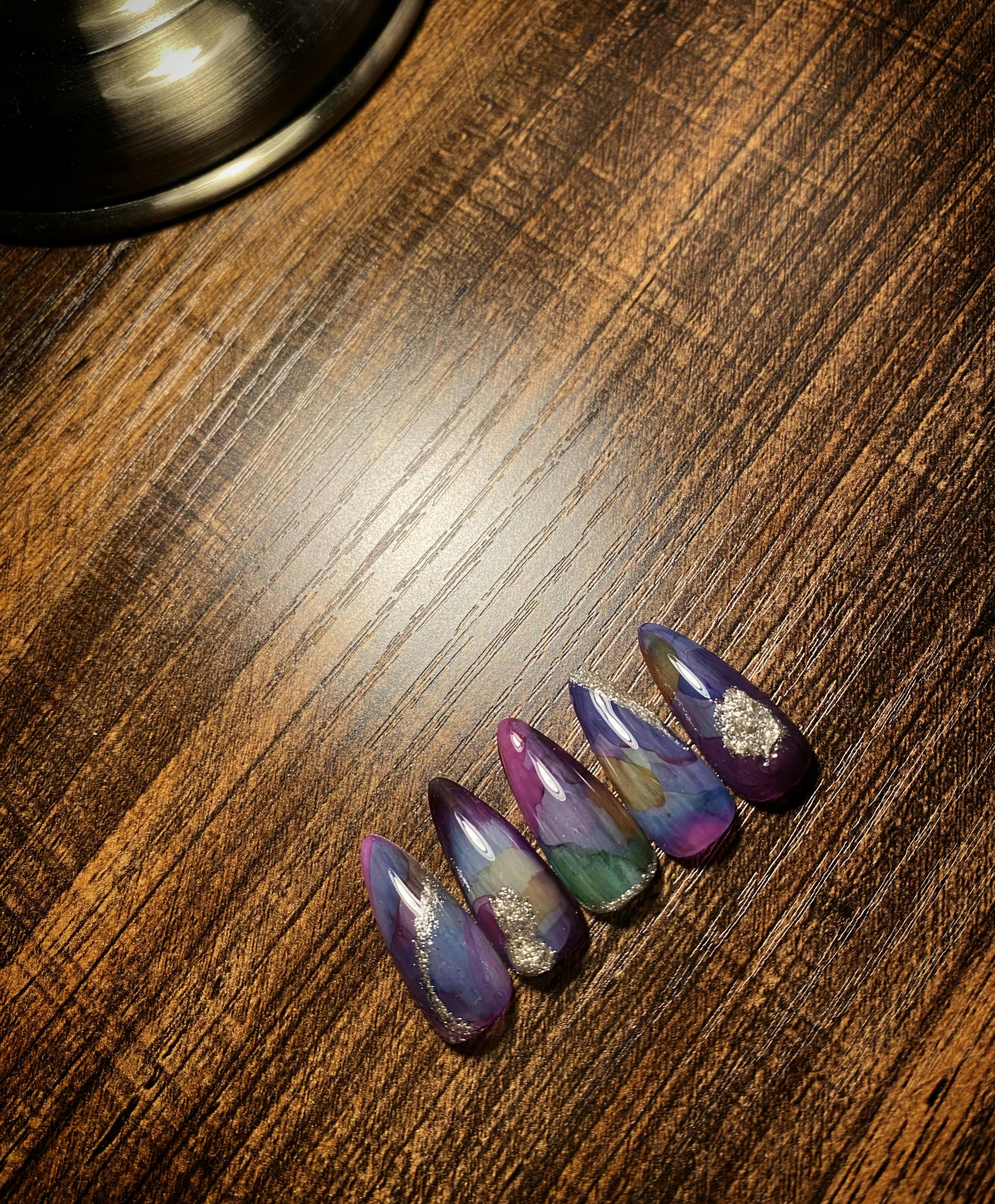 ネイリストによって得意不得意なデザインはあると思いますが、私はもともとアートが好きでインクアートに出会ってからは1作品が唯一の作品であること、二度と同じ作品を作れないと言う貴重なアートが完成することが大好きです。