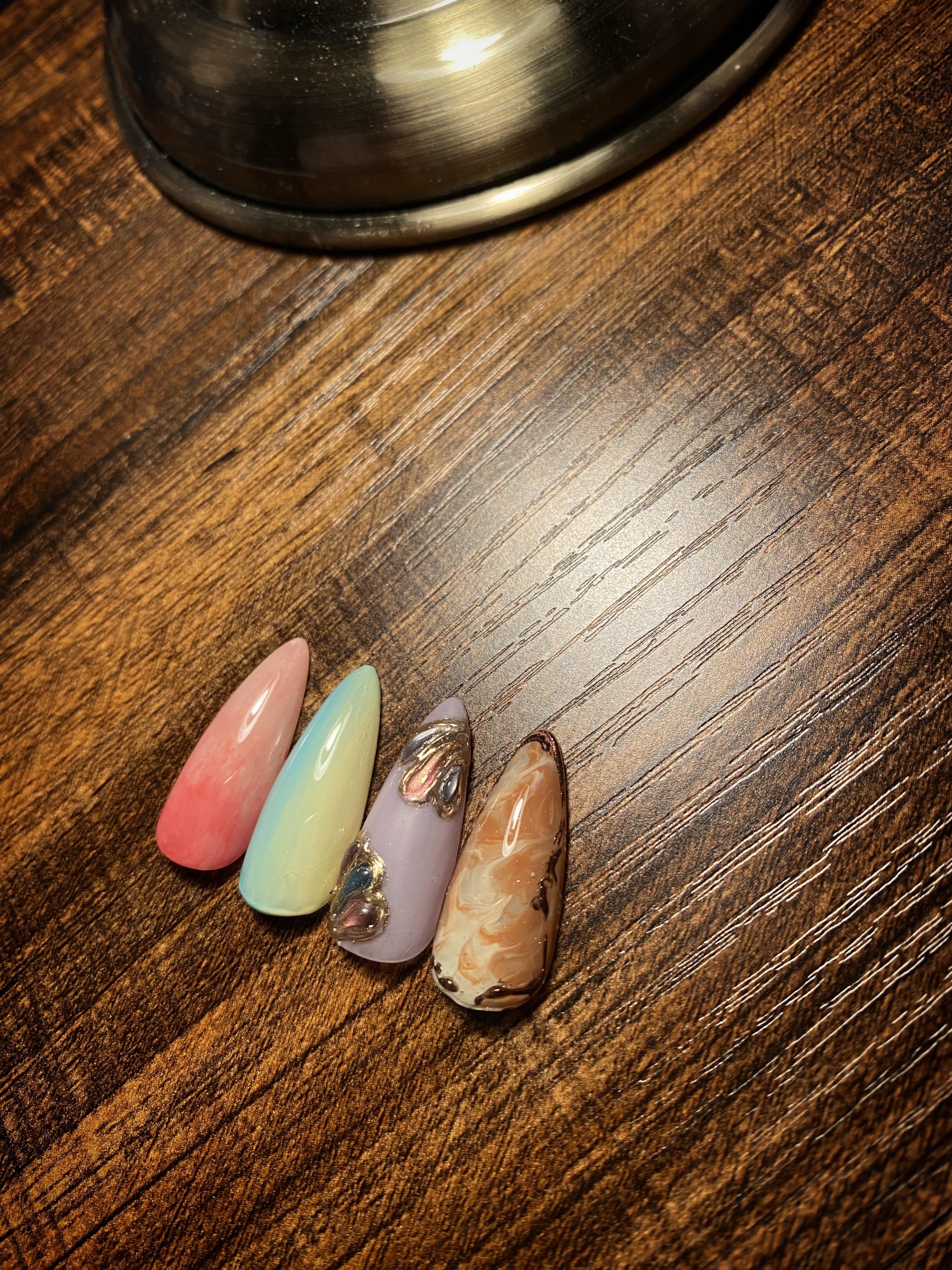 私はネイルを15年以上の独学と先輩ネイリストから直々に技術を教わってまいりました。資格がないことはお客様にとって不安要素になるかと思います。しかしお爪に関する知識、衛生面の知識、芸術に関する独自のセンスには自信があり、「独学でここまでできたら素晴らしい!」と先輩ネイリストから心強いお言葉をいただいております。