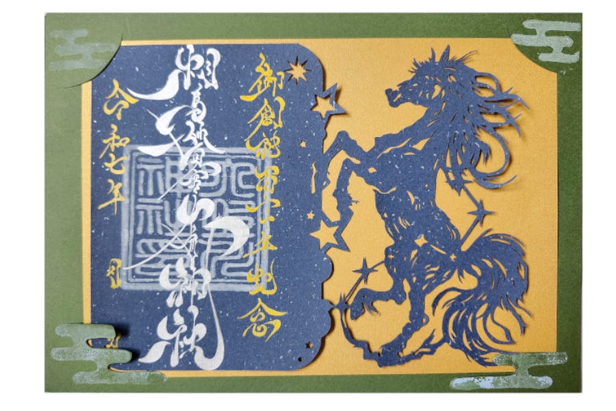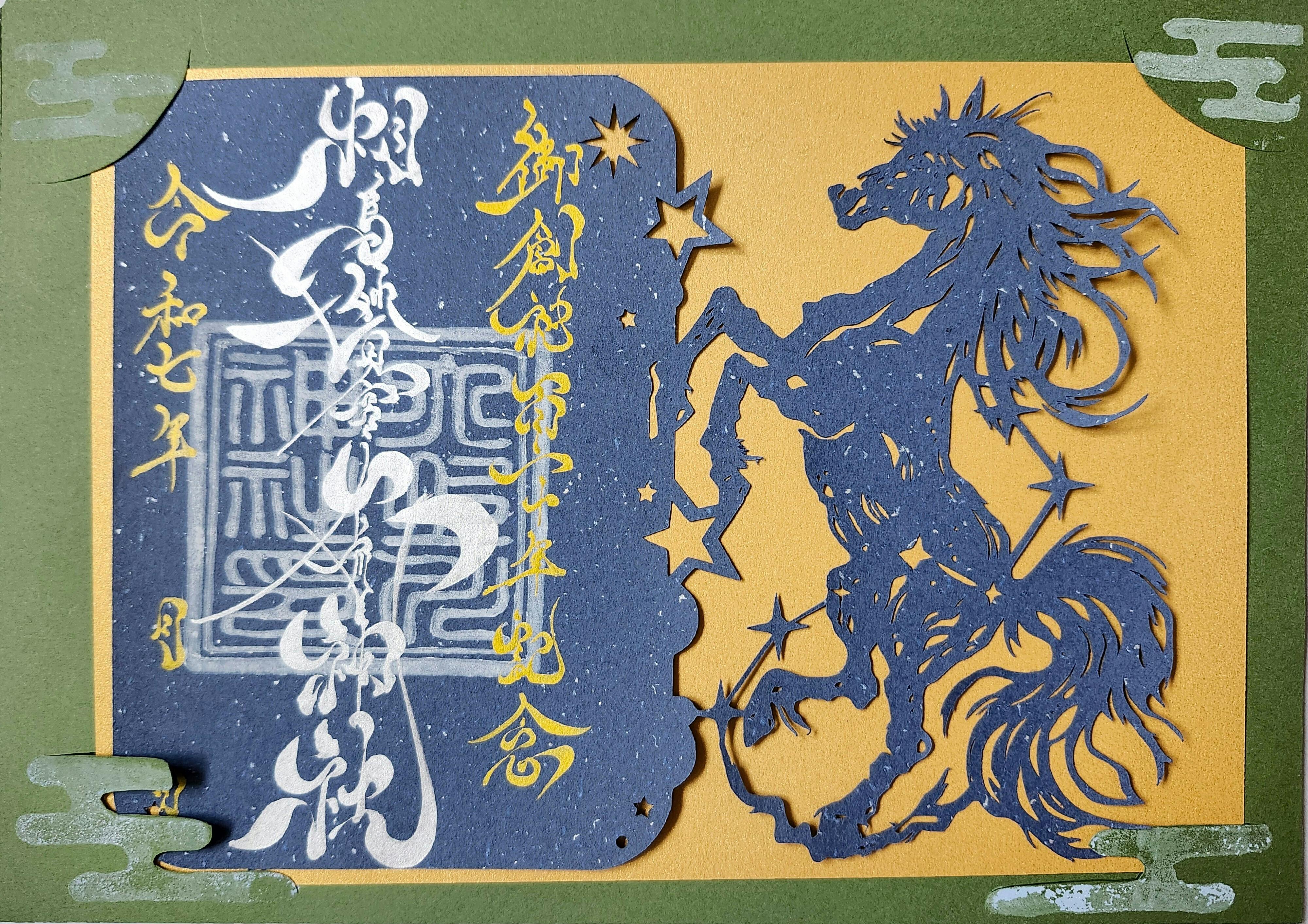 馬と妙見様(北極星・北斗七星)の意匠の記念切り絵御朱印です。